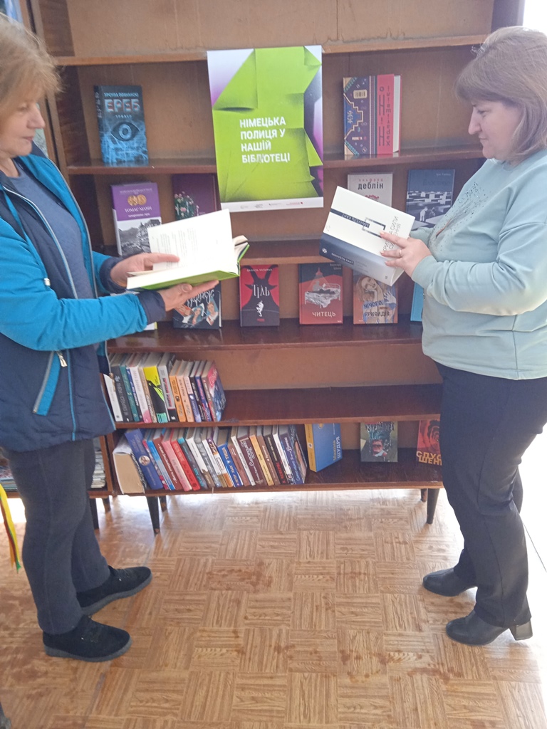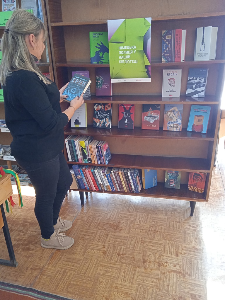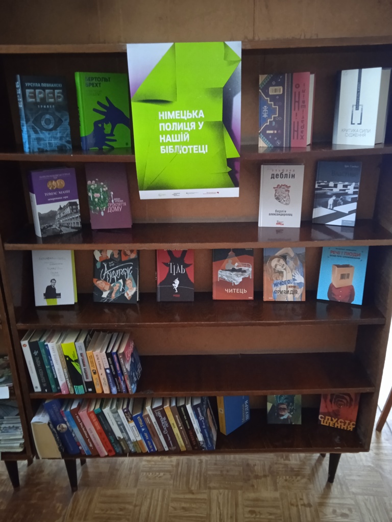Бібліотека отримала спеціально відібраний комплект з 14 книг. Це книги для дорослої аудиторії українською мовою, що представляють різноманітні жанри класиків та сучасних німецьких авторів.