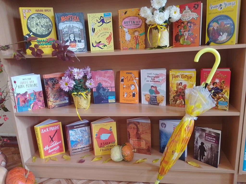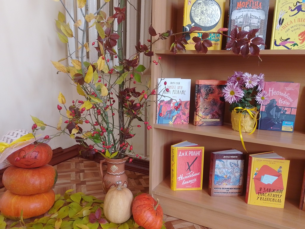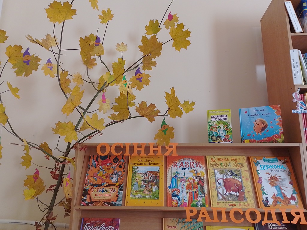 Є стереотип, що осінь це холодно, мокро та сумно. Можливо в когось і так… Але не в секторі обслуговування дітей головної бібліотеки міста. В нас осінь асоціюється з яскравістю природи, теплим бабиним літом, веселими стрибками по калюжах та затишними вечорами з цікавою книгою в руках. І нам дуже хочеться поділитися з усіма оточуючими своїм прекрасним осіннім настроєм. З цією метою для всіх наших користувачів створено виставку-айстопер «Осіння рапсодія». На ній представлено художню літературу для користувачів різної вікової категорії.