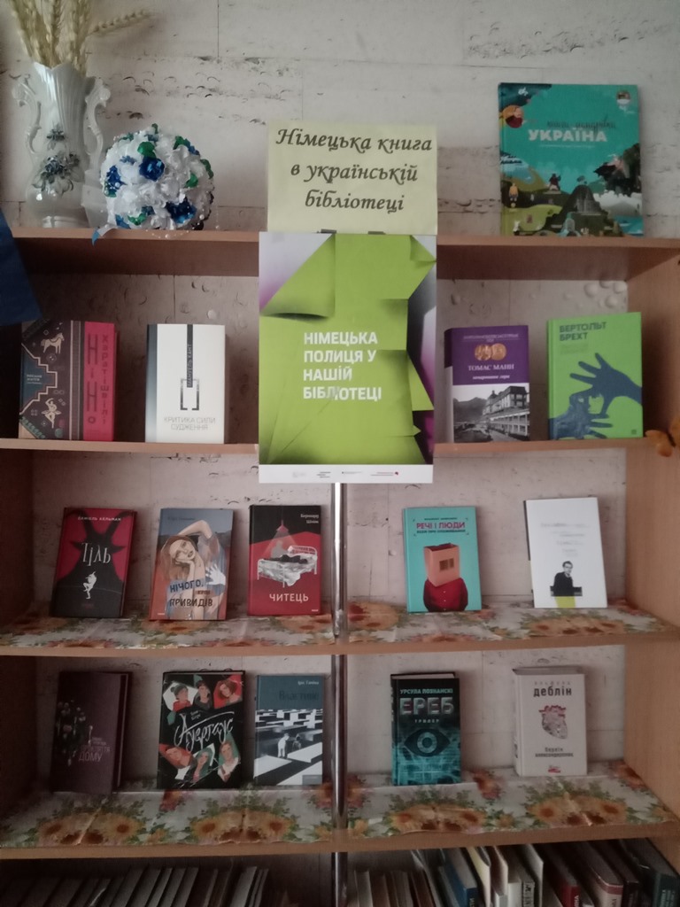 Первомайська міська бібліотека філія №3 нещодавно отримала 14 книг німецьких авторів українською мовою в рамках проєкту “Обмін між німецькою та українською книжковою та літературною індустрією” Goethe – Institut Ukraine, Німецькою асоціацією видавців та книгорозповсюджувачів і Українським Інститутом книги. Яскраві обкладинки , якісний, чіткий друк, різноманітні письменники – від молодіжної прози, до всесвітньо відомих класиків. Тож нові книги чекають своїх шанувальників.