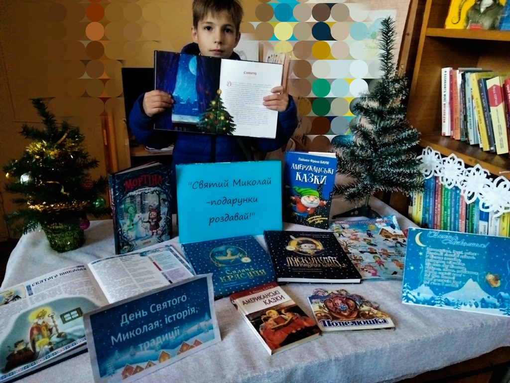 В міській бібліотеці-філії №4 для юних користувачів оформлена виставка-привітання “Святий Миколай -подарунки роздавай! Діти ознайомилися з легендами та переказами в яких розповідається про Миколая, також пригощалися цукерками! Бібліотека щиро вітає усіх своїх читачів із цим добрим і солодким святом!Нехай Чудотворець принесе у ваші домівки мир,добро,радість,розуміння і солодкі подарунки!