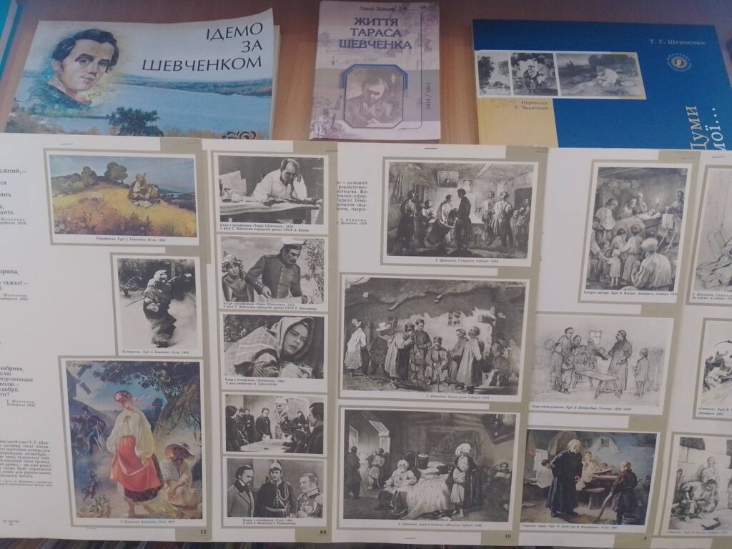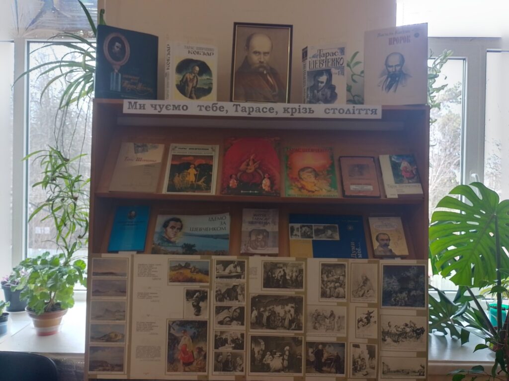 Сектор обслуговування дітей головної бібліотеки теж не залишається осторонь цих пам’ятних днів. В дитячому абонементі юним користувачам презентована виставка-ілюстрація «Ми чуємо тебе, Тарасе, крізь століття». На виставці представлені твори великого Кобзаря, книги про нього та ілюстрації до його творчості і світлини його картин.