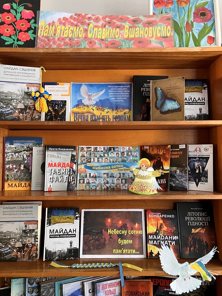 Міська бібліотека-філія №2 презентує виставку літератури «Небесна Сотня: герої нашої свободи», присвячену подвигу Героїв Небесної сотні – мужніх українців, які віддали своє життя за гідність, свободу та європейське майбутнє України. Представлені документальні видання, спогади очевидців, публіцистика та художні твори, що розкривають хроніку Майдану, історії мужності й самопожертви заради свободи та незалежності України.