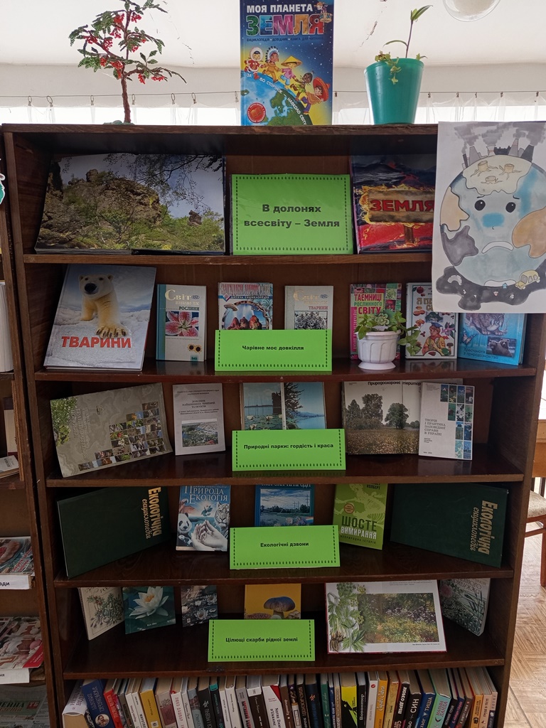 22 квітня відзначається Всесвітній день Землі, свято єднання народів планети у справі захисту навколишнього середовища і збереження тих багатств і природних ресурсів, якими наділила нас природа. Вперше День Землі було відзначено у 1970 році. З того часу його проводять щороку, 22 квітня. Цей день покликаний об’єднати людей планети в справі захисту навколишнього середовища , нагадати про те, що планета, яка дарувала нам життя, унікальна й має потребу в турботі і захисті. Ця проблема не має територіальних кордонів та мовних бар’єрів. З цієї нагоди у Кінецьпільської бібліотеці філії оформлена тематична книжкова виставка «В долонях всесвіту – Земля». Відвідувачі мають чудову нагоду погортати сторінки книжок про тварин, птахів, рослини, природу нашого краю і всієї України, про все те, що ми можемо втратити, не оберігаючи нашого довкілля.