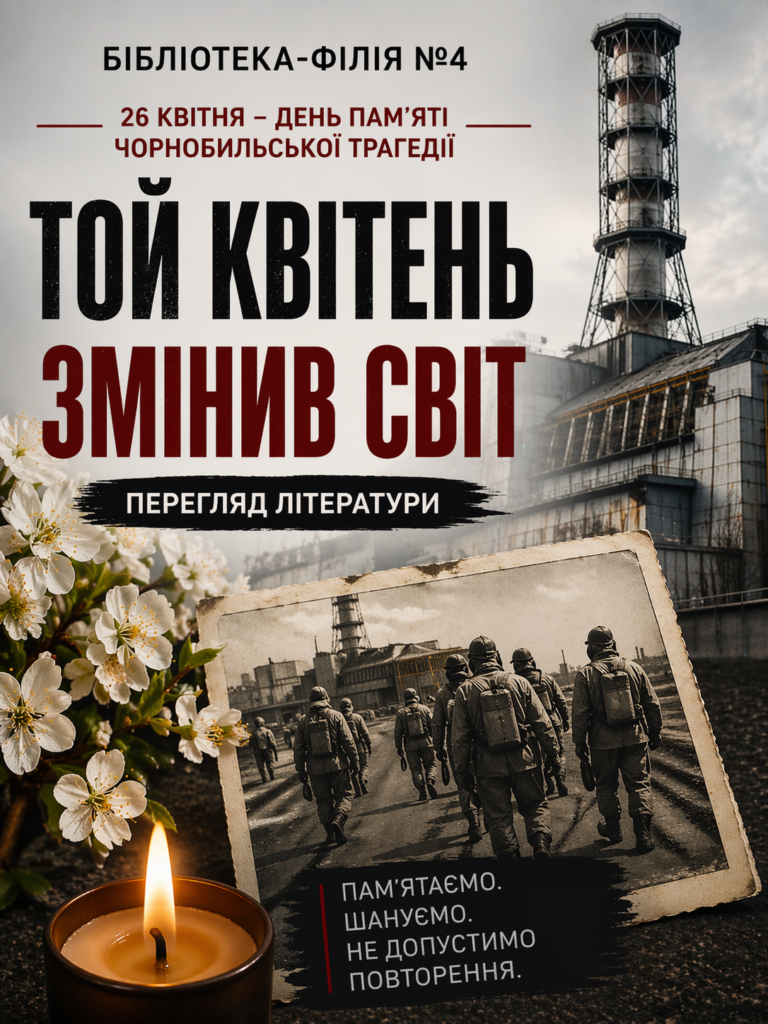 У бібліотеці-філії №4 відбувся перегляд літератури під назвою «Той квітень змінив світ», присвячений трагічним подіям Чорнобильської катастрофи.