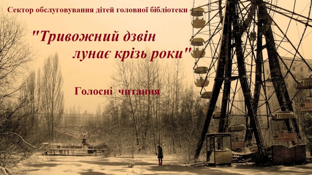 Сучасне покоління не має жодного морального права забувати про страшну ціну помилок та експериментів. З цією метою на абонементі сектору обслуговування дітей головної бібліотека відбулися голосні читання «Тривожний дзвін лунає крізь роки». Бібліотекарка Катерина Кравченко разом з активною молоддю читали поетичні рядки сучасних українських поетів присвячених подіям, наслідкам та героїчним вчинкам ліквідаторів трагедії на Чорнобильській АЕС. Захід пройшов в супроводі тематичної книжково-ілюстраційної виставки.