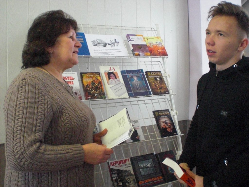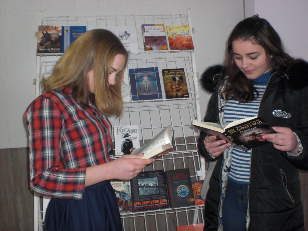 Працівники бібліотеки розповідали учням про український детектив, зокрема, видання Андрія Кокотюхи «Небо над Віднем», «Різник з Городової» та ін. Привернули увагу молодих людей до творів Сергія Лойко, особливо його нової книги «Рейс», в основі якої лежать реальні події – загибель літака «Боїнг І» над Донбасом і війна на Сході України.