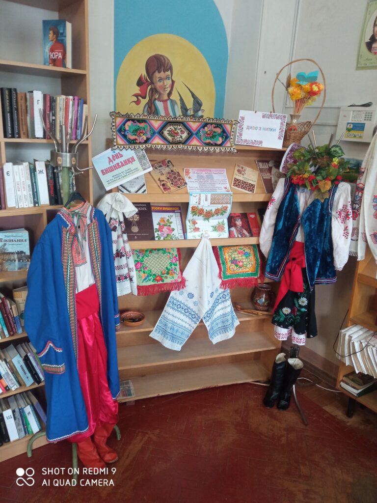 Вишиванка в Україні – це світ краси і фантазії, поетичного осмислення навколишньої природи, схвильована розповідь про думки і почуття людини, світ натхнення образів, що сягають давньої міфології, звичаїв і уявлень наших предків.Працівниками абоненту КЗ «Публічна бібліотека» презентовано книжкову виставку “Диво з нитки” та виставку – інсталяцію “Українські вбрання та символи”, що є рукотворною часткою світогляду українського народу. Свято вишиванки, хоч і не так давно започатковане, але протягом останніх років досягло особливої уваги і розквіту. Українську вишиванку називають “Молитвою без слів”, а сорочка – вишиванка є головним оберегом людини. Наша бібліотека розквітла різноманітними кольорами та орнаментами нашої рідної та незламної України.То ж, одягаймо, друзі,вишиванки не тільки у свята, а і у будні, щоб українців бачив увесь світ!!!